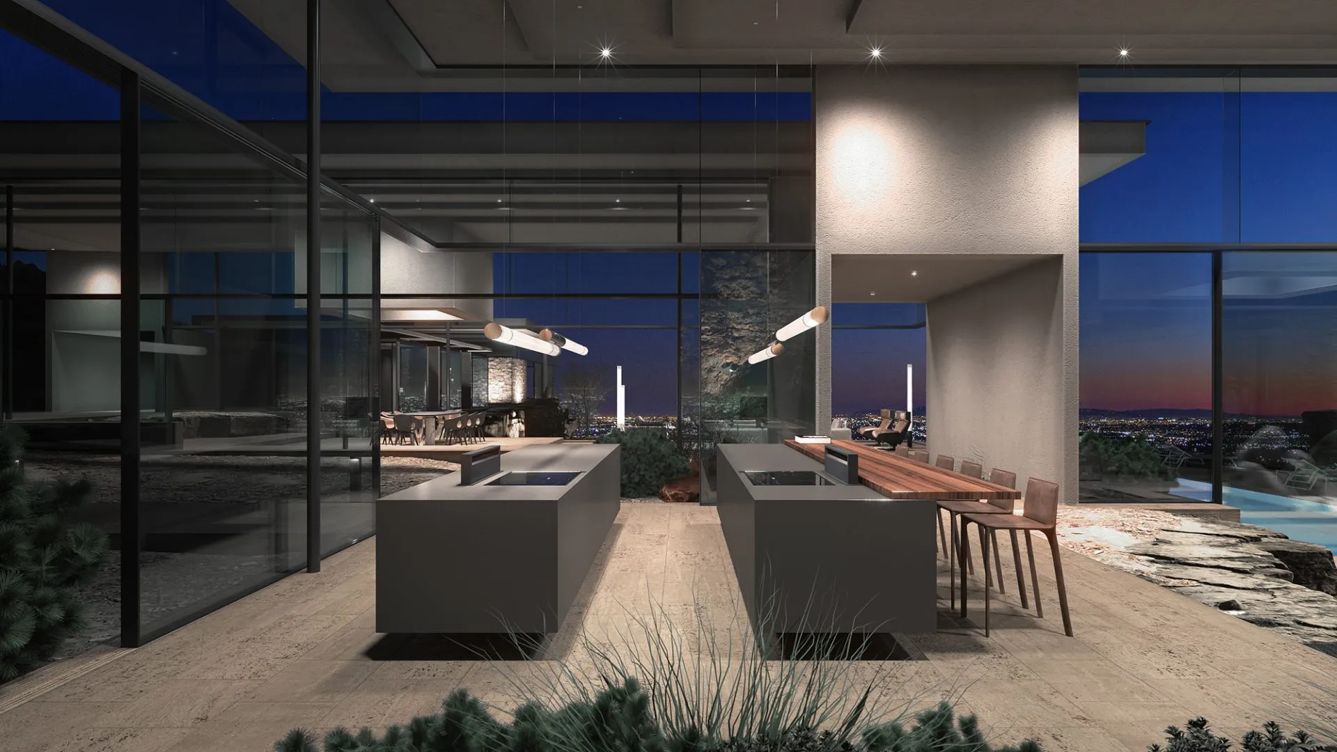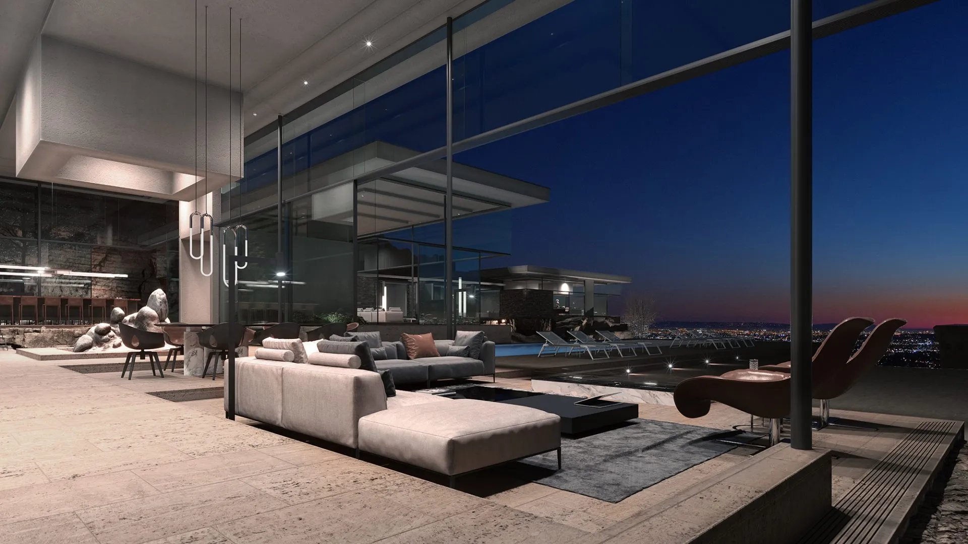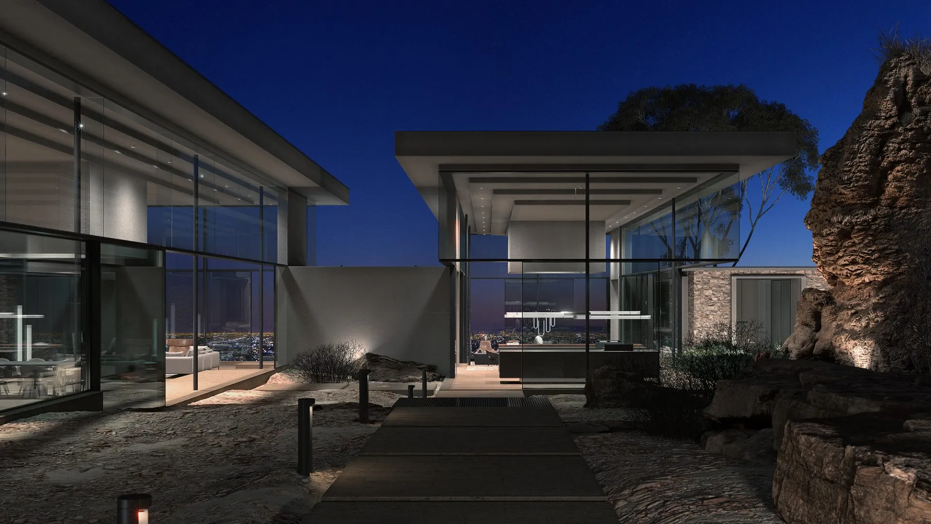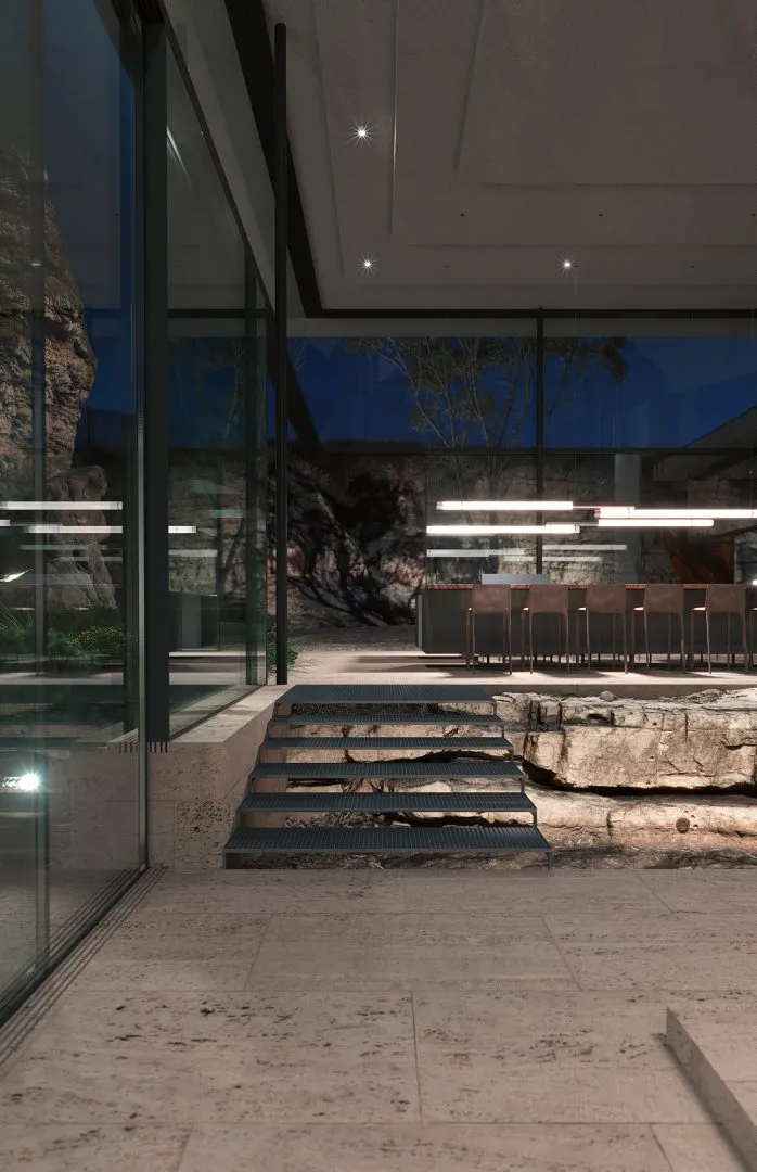 As befits a sprawling palace in the movie capital, one is never sure what one is looking it, is it real or facsimile, inside or outside- reflections on the infinite glass play tricks on the mind. Glass boxes with reverse steps ceilings, inverted Mayan temples above you, house couches, living room, everything. This house is all glass (super-reinforced against earthquake), merging the living areas with the pool and the infinite lights of the megacity splayed below. One can live indoors and outdoors simultaneously, inspired by the boundless openness of this magnificent abode! If this stunning building isn’t used in a movie, it would only be because the owners only want it as their private domain.