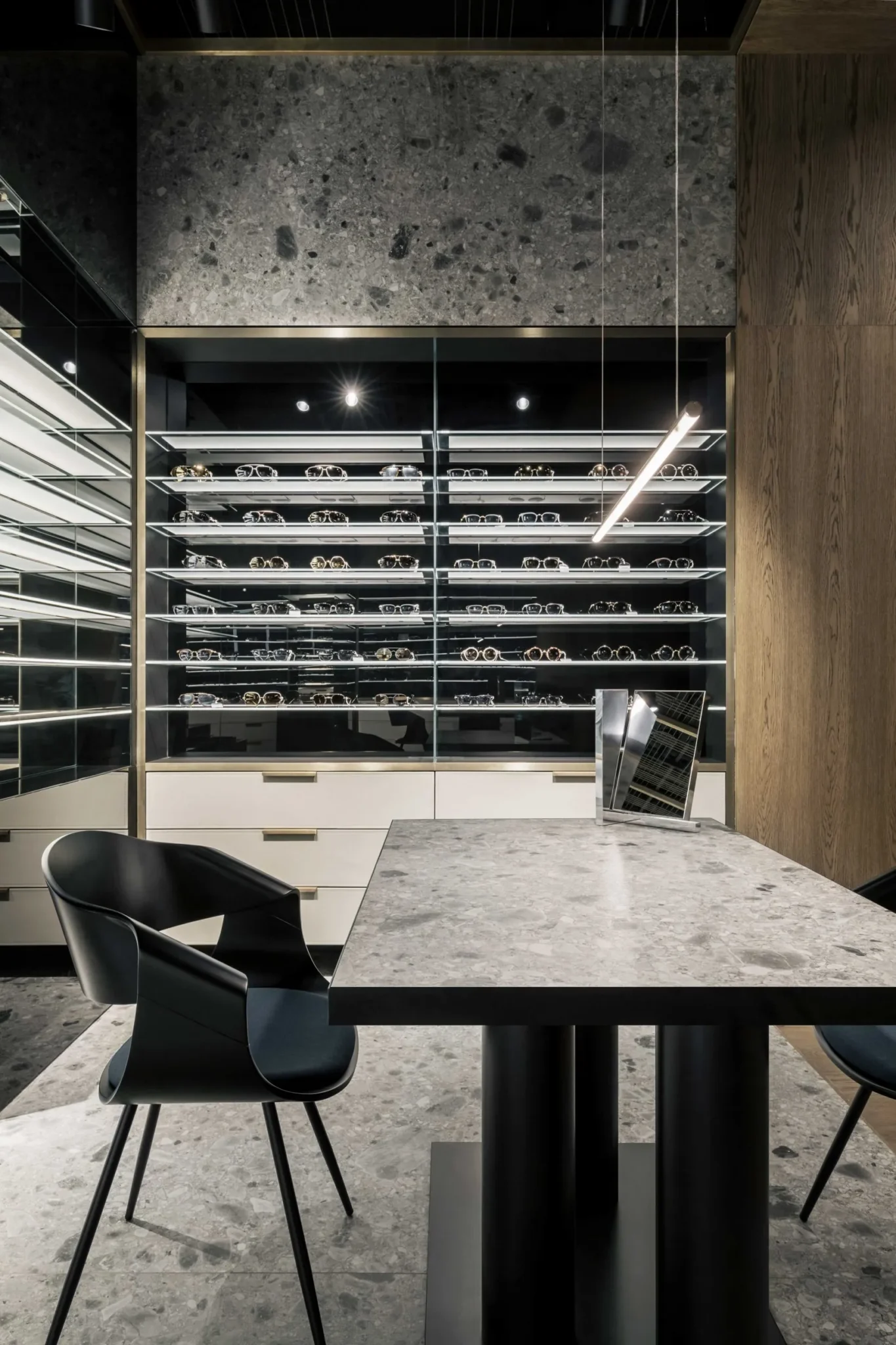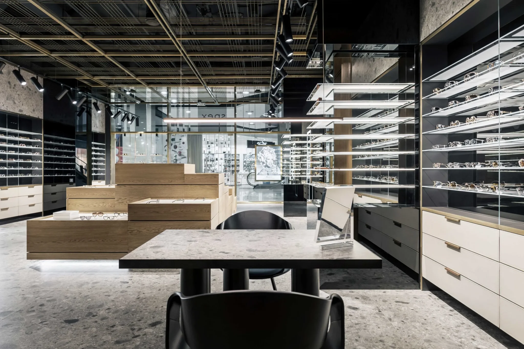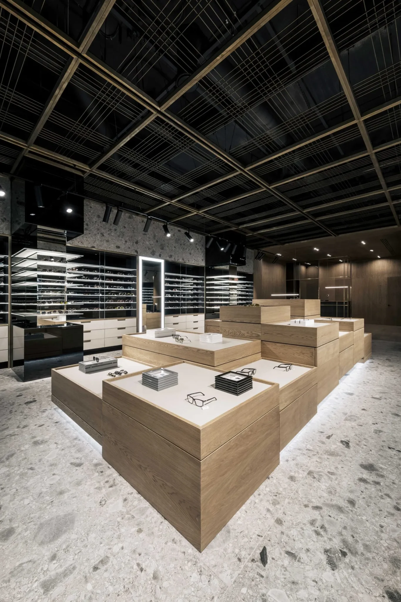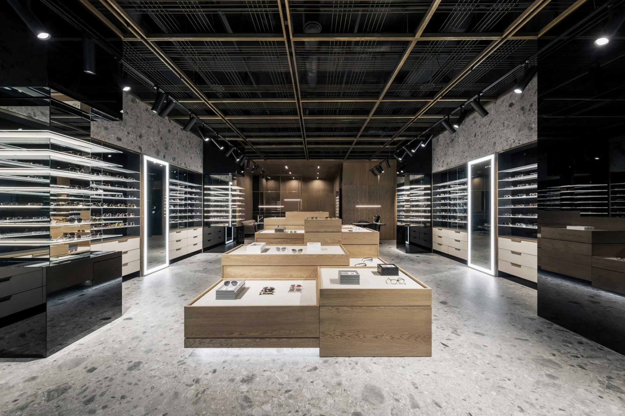 The design of the Spex eyewear showroom in Dubai was developed by the architectural studio LIVORA. Soft minimalism, ample space and natural materials are the distinguishing features of the interior. The goal of the project was to create a convenient, “clean” space that wouldn’t distract, but helps customers navigate the range of glasses. The interior is organized according to classical principles: a glass entrance area, a spacious exhibition hall, and a customer service area. The open layout ensures a smooth flow from one area to another. The modern minimalistic style of the space is emphasized by the restrained color scheme. Copper elements and mirror surfaces were used to create a charming and stylish ambience. It produces an informal setting for the retailer and customer, letting them interact in a welcoming space. Muffled, calm tones create a soft, relaxed atmosphere.