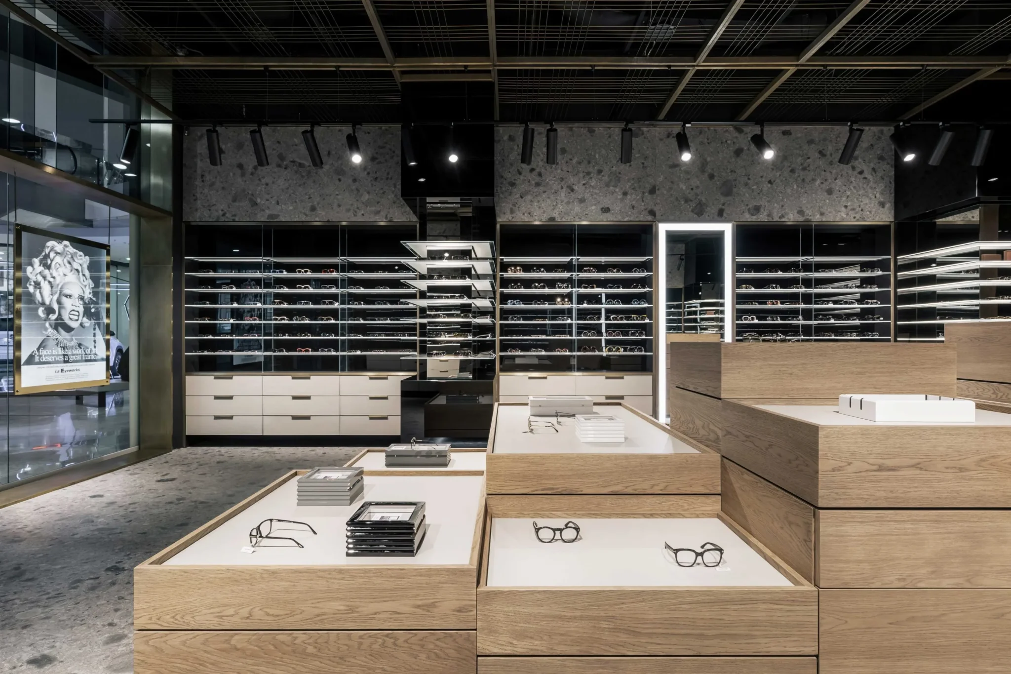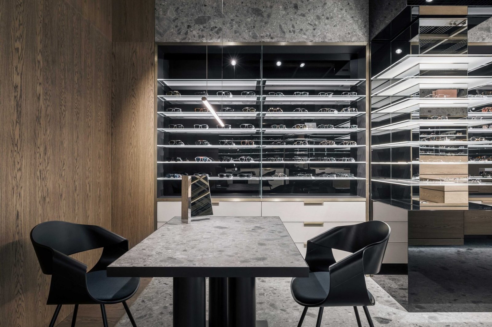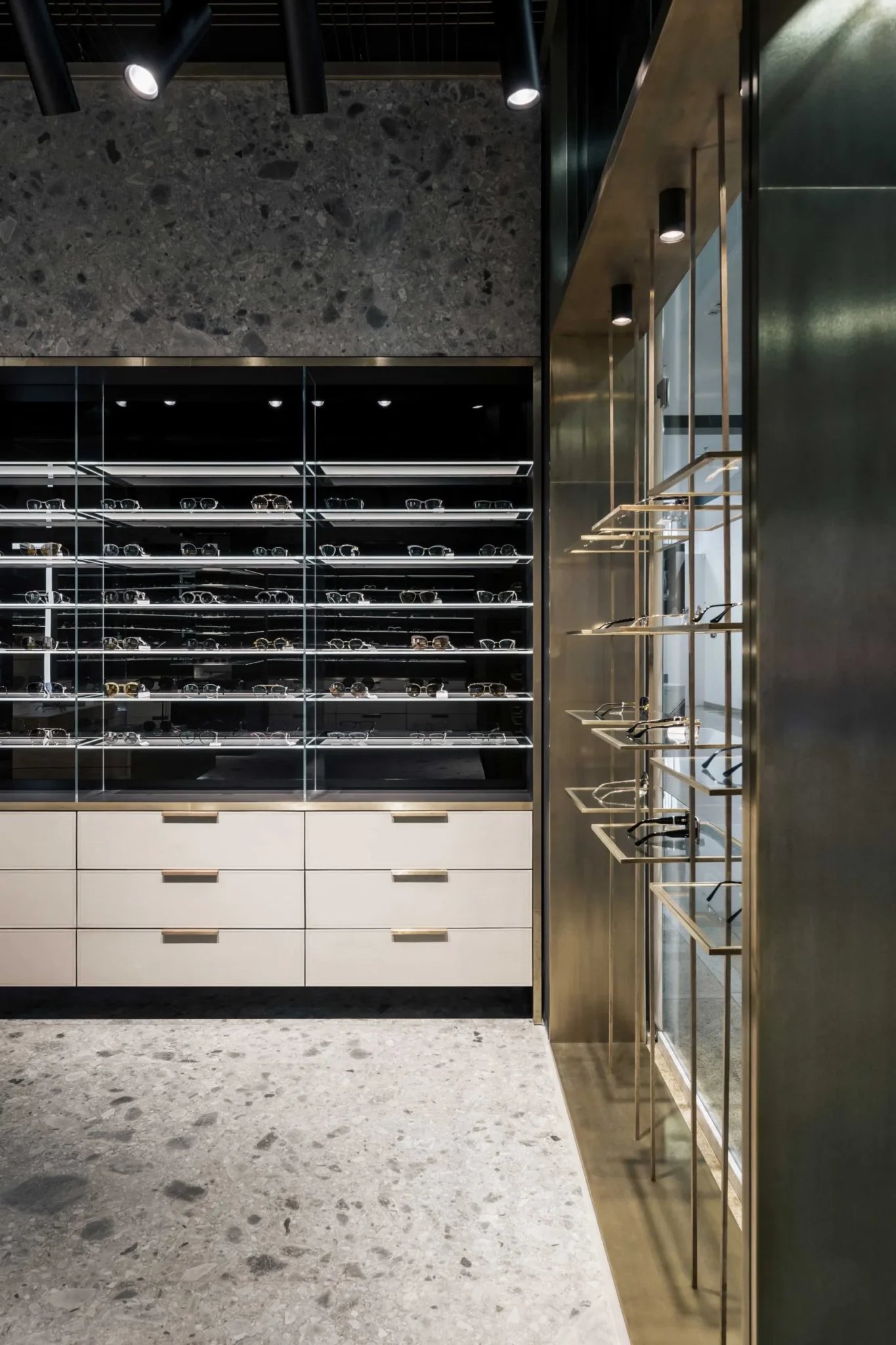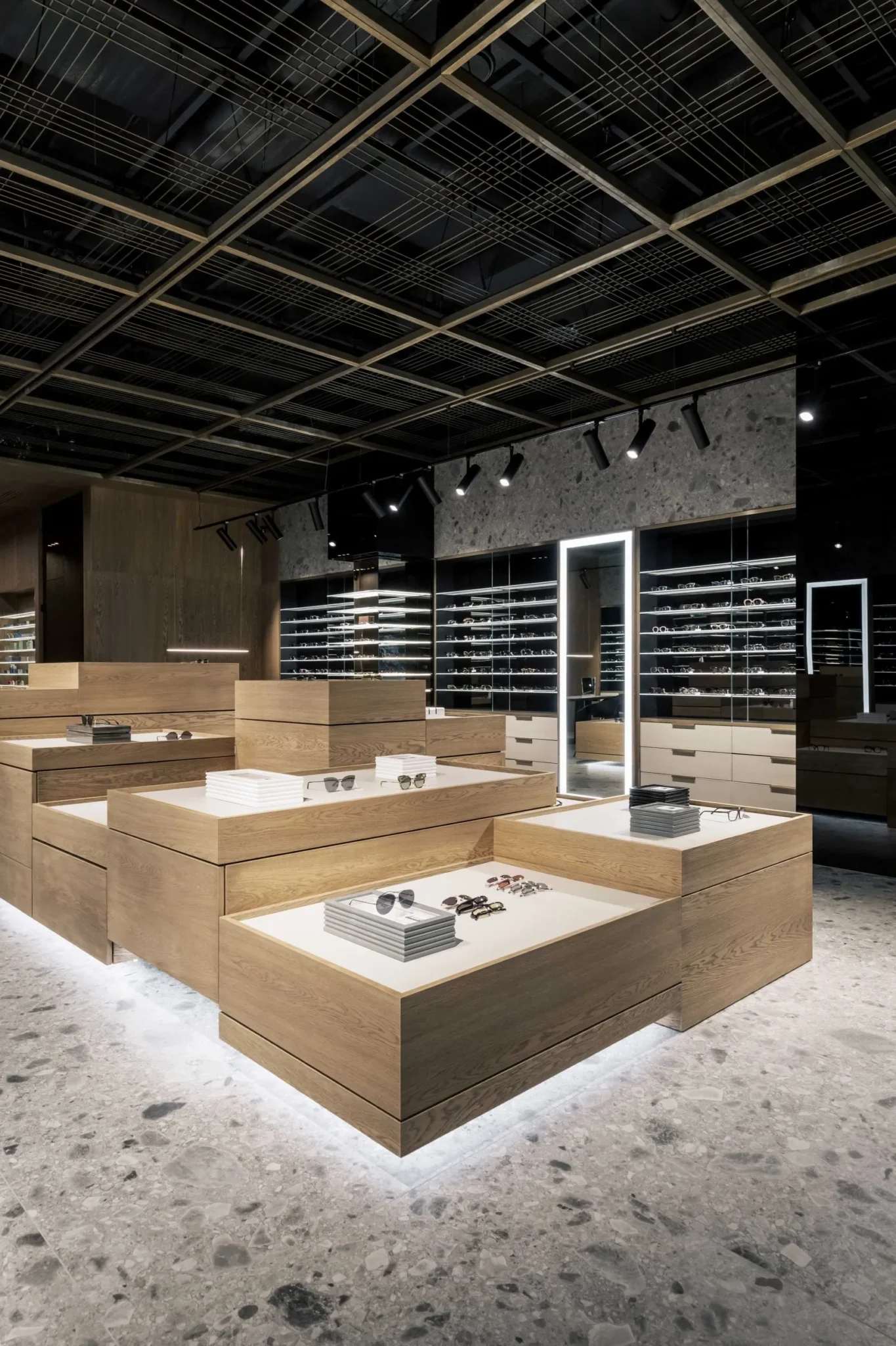The design of the Spex eyewear showroom in Dubai was developed by the architectural studio LIVORA. Soft minimalism, ample space and natural materials are the distinguishing features of the interior. The goal of the project was to create a convenient, “clean” space that wouldn’t distract, but helps customers navigate the range of glasses. The interior is organized according to classical principles: a glass entrance area, a spacious exhibition hall, and a customer service area. The open layout ensures a smooth flow from one area to another. The modern minimalistic style of the space is emphasized by the restrained color scheme. Copper elements and mirror surfaces were used to create a charming and stylish ambience. It produces an informal setting for the retailer and customer, letting them interact in a welcoming space. Muffled, calm tones create a soft, relaxed atmosphere.